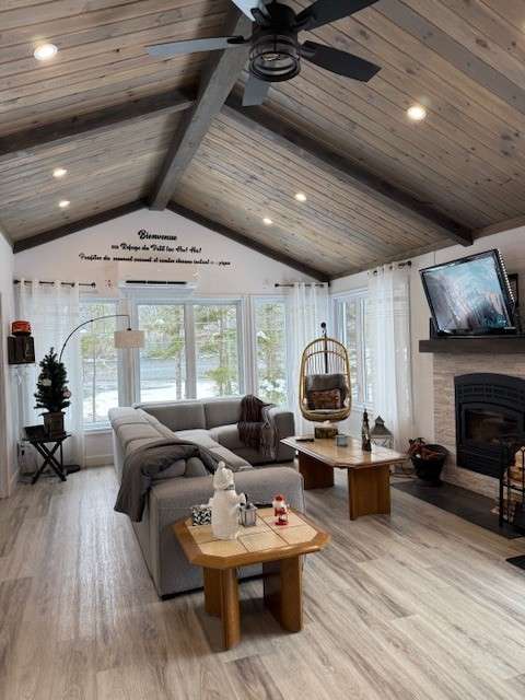 Situé sur le bord du Petit Lac Ha! Ha! Le chalet vous offre une vue imprenable sur le Mont du Four et les montagnes avec une magnifique terrasse plongeant sur le lac.